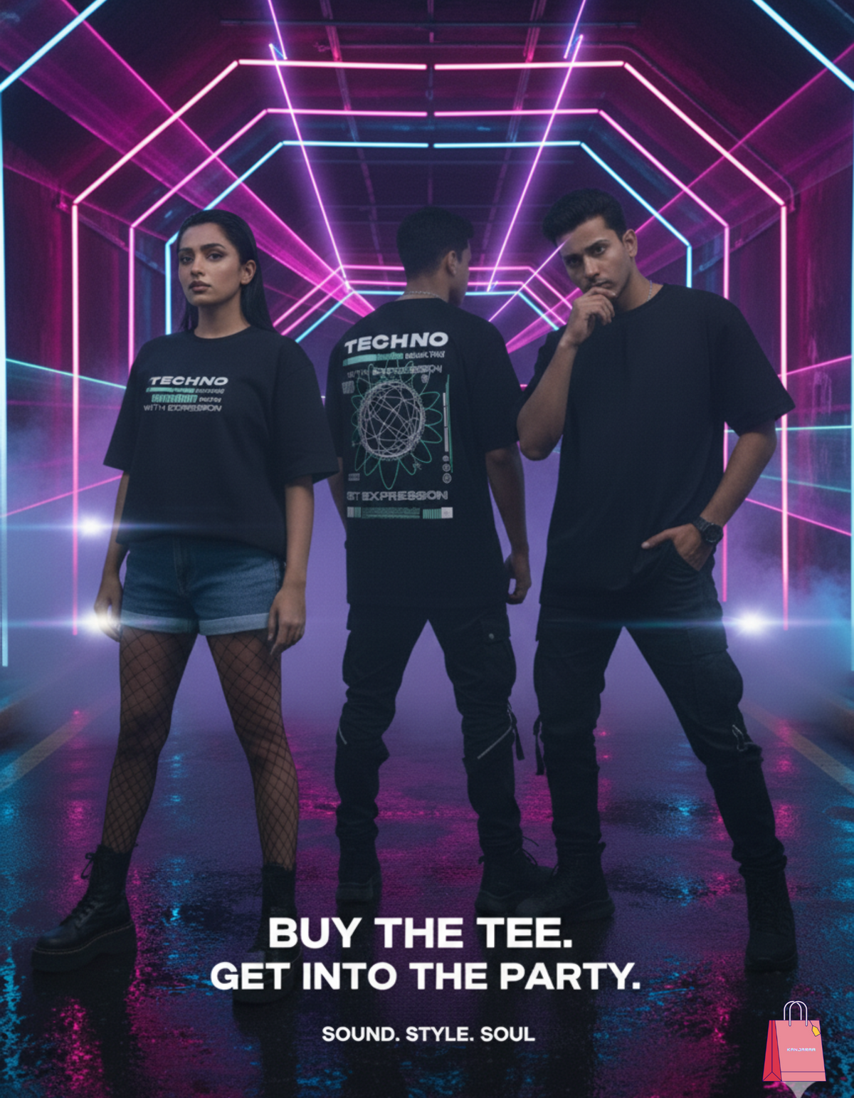 Buy any Kanjaraa Techno Oversized T-Shirt — get free entry to your next favorite techno music event.